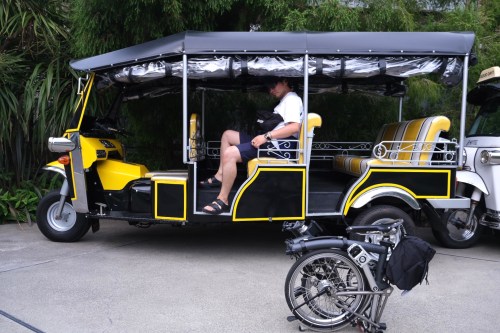 自転車が乗れない…なんて人にもこのトゥクトゥクに乗っていけば、海の方まで連れて行ってくれるサービス付きっていうのも嬉しいね。