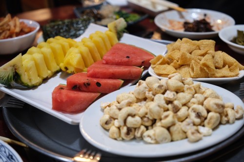 最後はスイカとパイナップル、それとポップコーンやとんがりコーンなどの大量のお菓子。