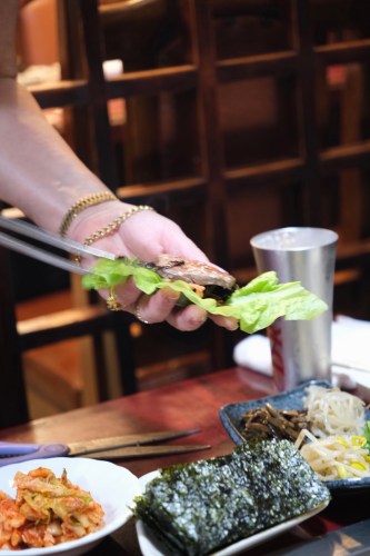 なんと店員のお母さんがサンチュに巻いて食べさせてくれるサービス付き(合法、チェンジなし(笑))