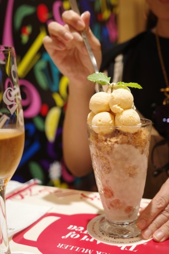 下にはシャキシャキに凍ったキャラメル&マロン紅茶の、かなり渋めでオトナな味わいのかき氷。