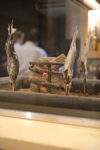 カウンターからは炉端で焼かれた魚のいい香りが。