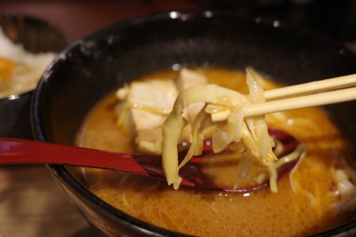 中太ちぢれ麺はエッジの効いた味噌スープとの相性もピッタリ。