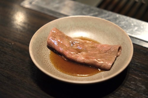 さらっと炙ってもらい、ライスの半分は極上なレア加減のザブトンですき焼き風で。